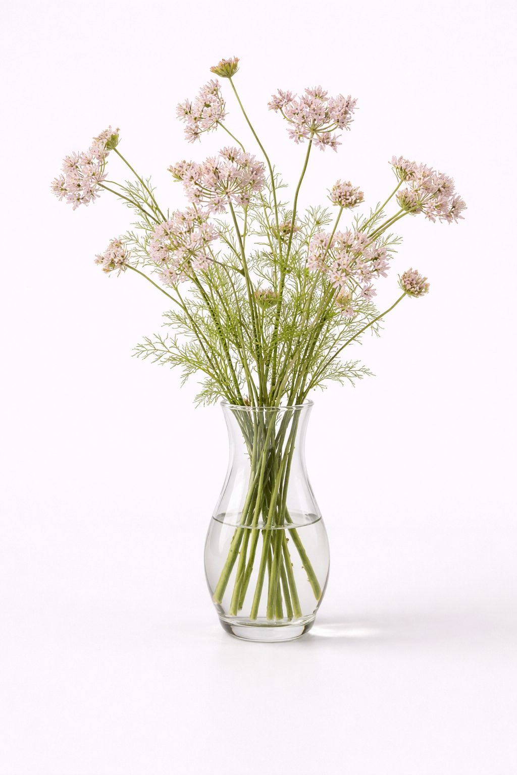 The subtle blush tones and wispy structure make this stem perfect for softening larger blooms such as hydrangea, peonies, and garden roses. Its natural movement adds depth and an effortless garden feel, making it ideal for wedding floristry, luxury centrepieces, floral runners, and refined interior arrangements.